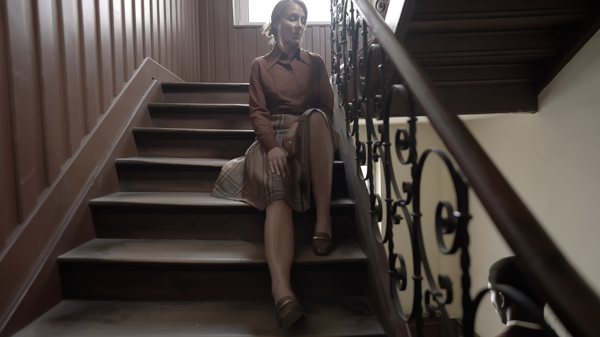 staircase as a stage to explore the tension between two unnamed characters in a