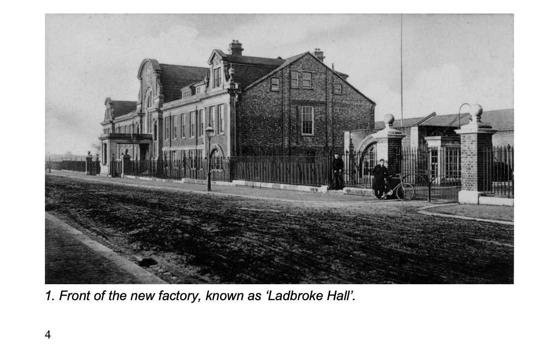 Ladbroke Hall in London’s Notting Hill disguises its industrial heritage well. Once the main building for a showroom and assembly factory for Clément-Talbot cars, with its oversized portico under a glazed arched window and heraldic crest, you would be forgiven for thinking it is a grand private country-house style residence for a wealthy West Londoner. There are connections to a country estate, though – the name Ladbroke Hall was inspired by the country seat of the parents-in-law of the financer of the project, Charles Chetwynd-Talbot, and the coat of arms is that of his family.