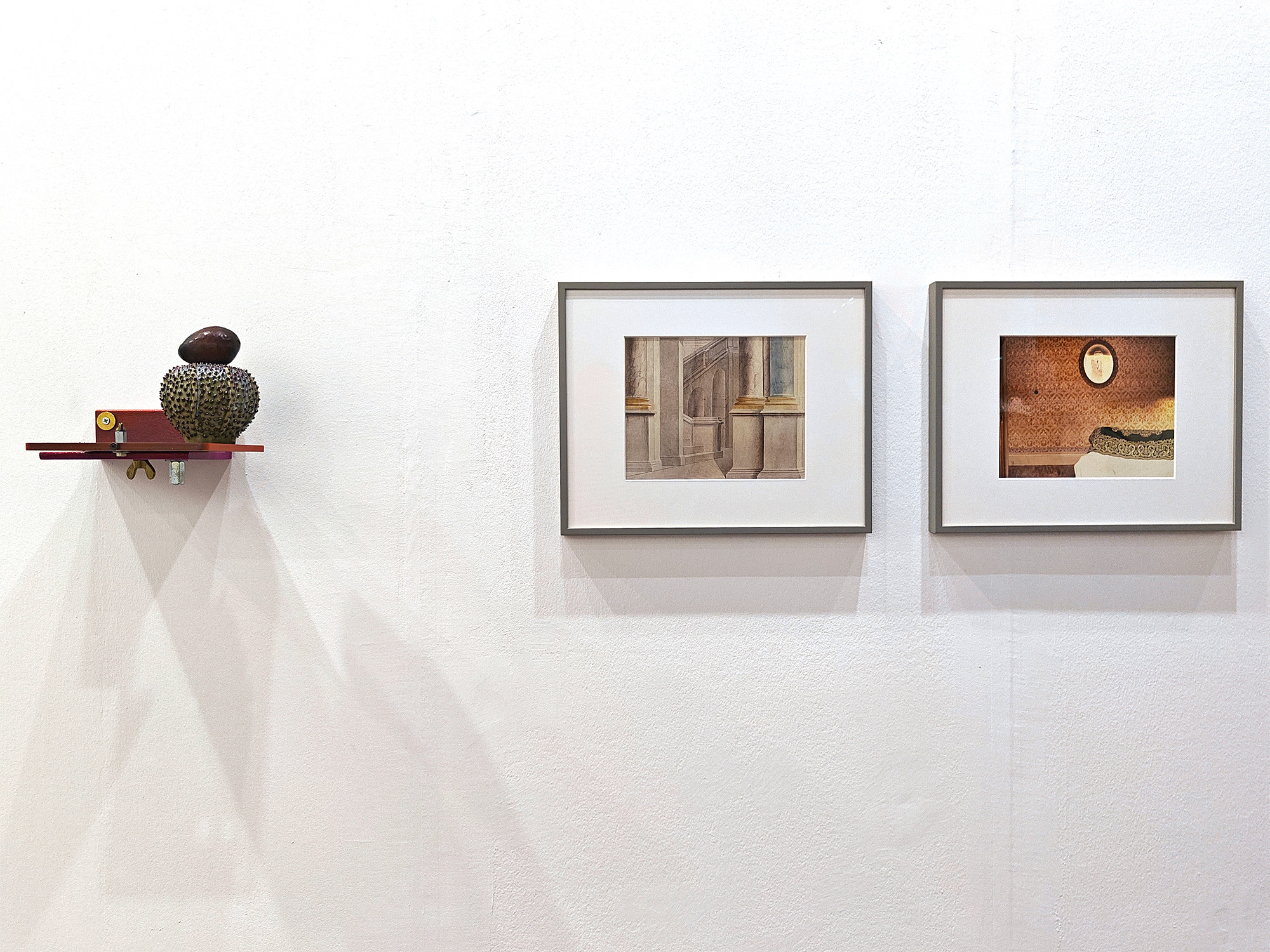 Works by Konrad Dodobbeleer with Luigi Ghirri photographs offer playful, weird bedfellows in two pairings. Belgian artist Dedobbeleer creates tiny, playful forms using found or everyday items, polished and painted into a new life. His tiny set pieces are set off against Luigi Ghirri’s photographs similarly reconceptualising everyday moments, as we recently covered in the major exhibition at MASI Lugano (see 00241). These two artists have an unexpected, but logical, relationship in the way they distil the mundane into something so clinically poetic to perhaps be visual haiku.