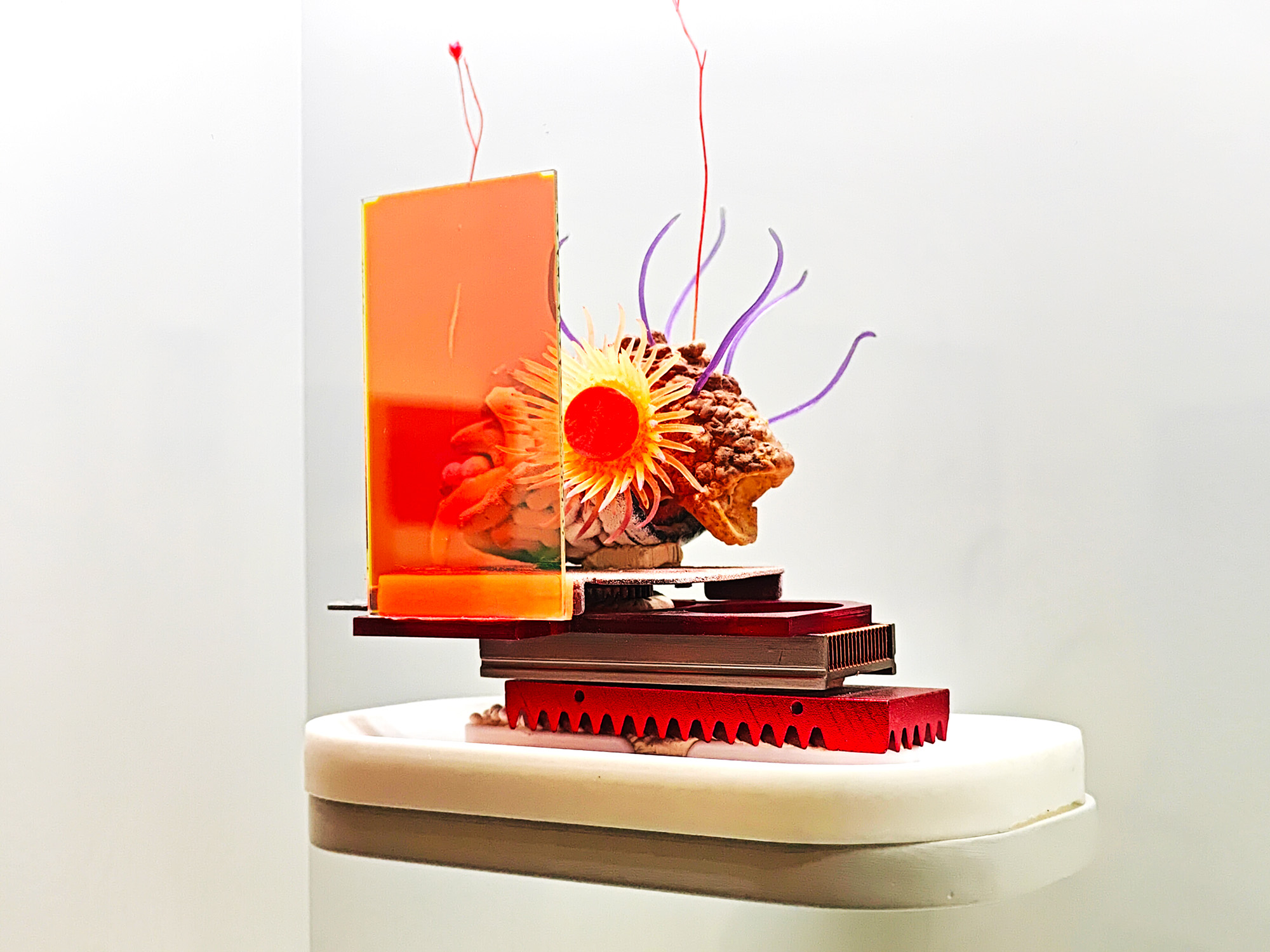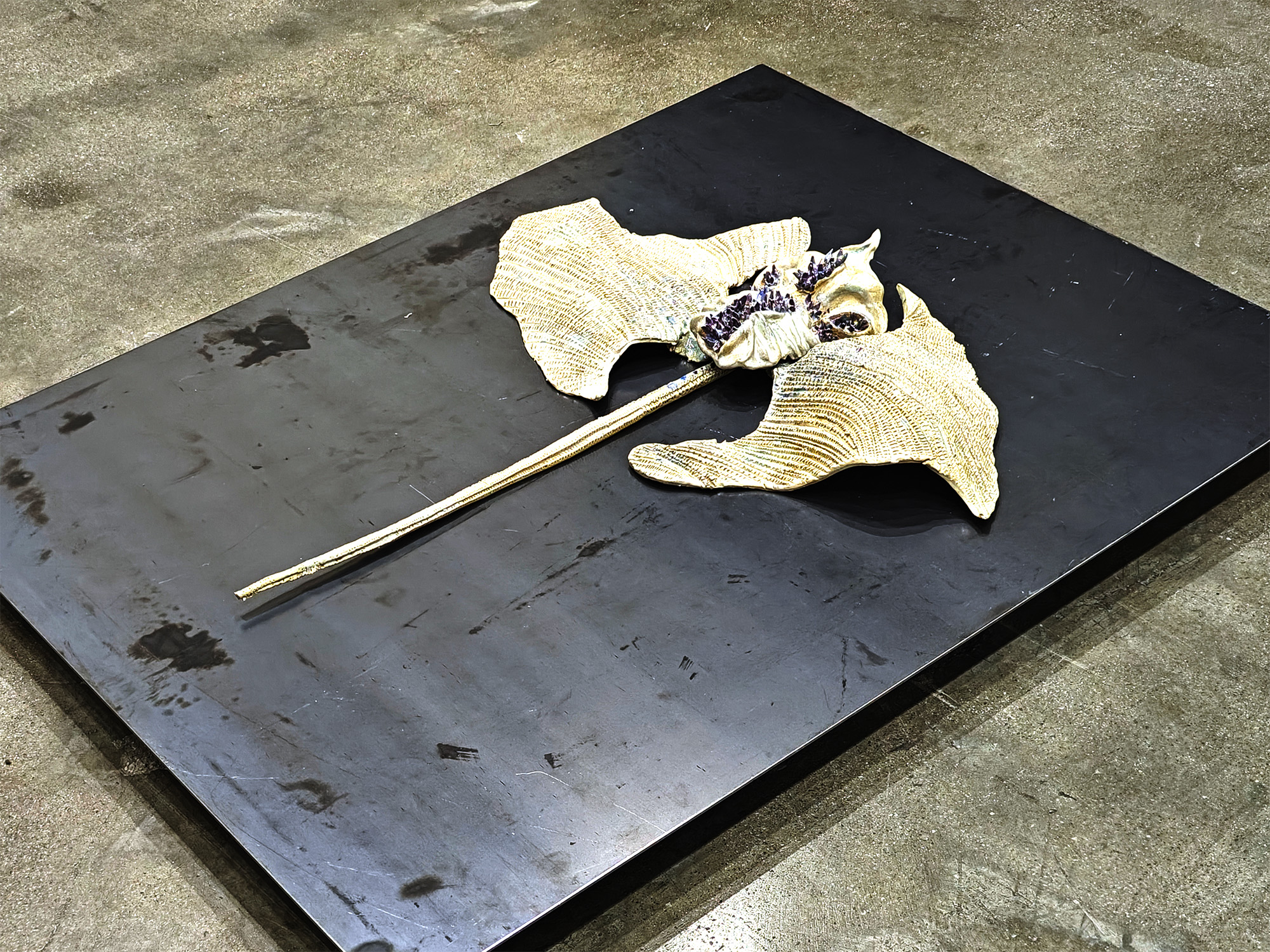 Together, their works here create a mannered study of the natural world as if a Victorian-era specimen exhibition of discovery. But there are twists, the nature seems unreal, as if it had opportunity to grow into other forms, or decay into unexpected versions of itself. These are alternative narratives, underpinned by an imaginary fossil-like discovery by Elfeky on the floor, a dreamlike imaginary of an unlived creature.