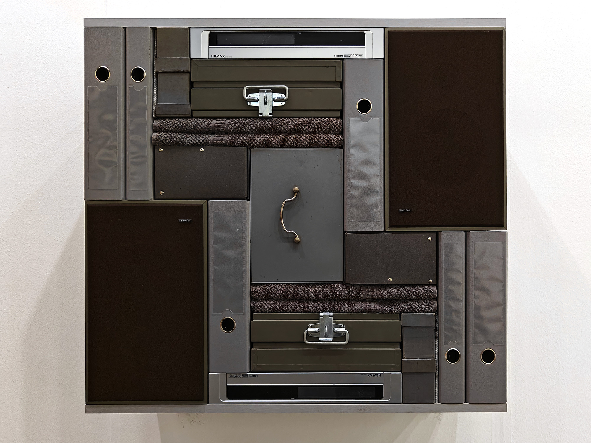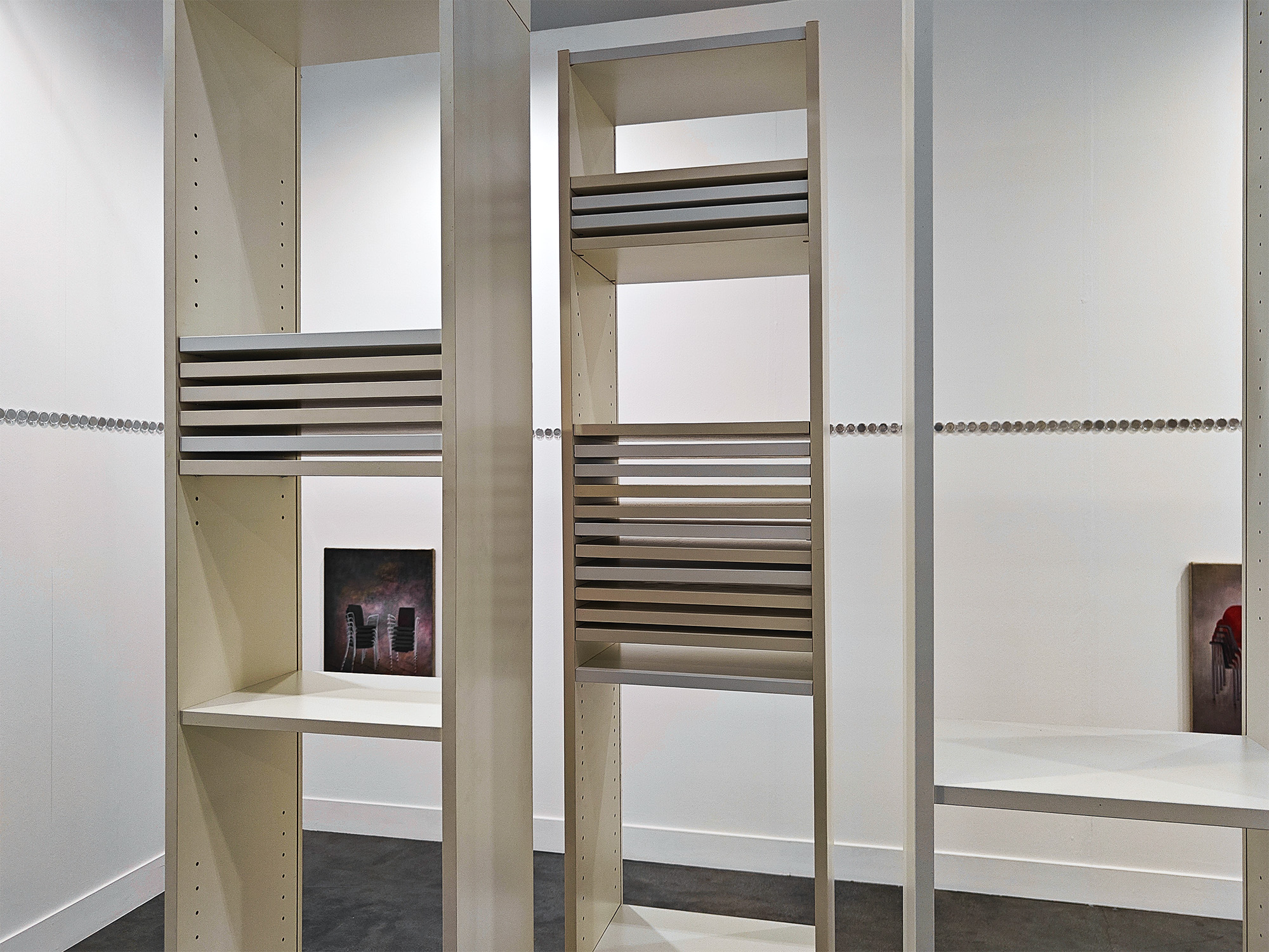 Artists: Michael Johansson, Guy MeesThe artwork description for Michael Johansson’s Flip Shelf - Grey from 2018 says it is made from “Mirrored shelf system with grey ordinary items.” Those items are, indeed, very ordinary, but compressed and compacted into a very unusual form. The square unit almost looks functional and as if it should be presented at Milan’s Salone design week, which follows Miart and Milan Art Week in the diary, but it is very much an uncanny art object speaking to the perfunctory structures, orders, and systems from which we organise our lives and spaces.