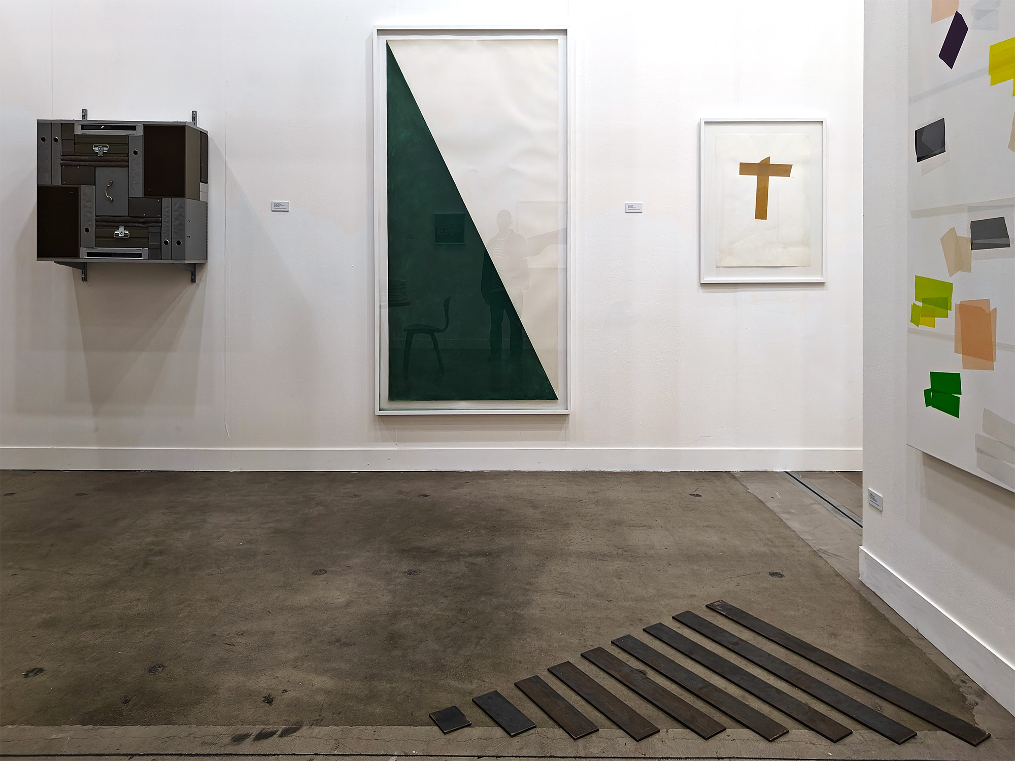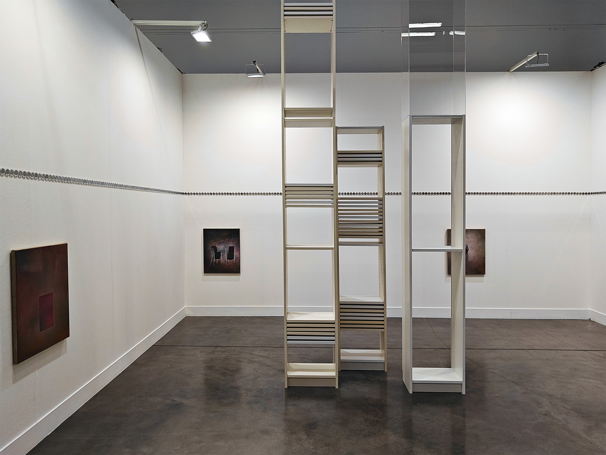 The Emergent section at Miart, right at the entrance and the first sequence of booths visitors experience, is dedicated to young, fresh, and emerging galleries. They are offered discounted rates and a prominent space in the hope that they continue at the fair as they mature, and over the years many do. One booth presents a well-balanced coming together of Danish and German galleries, with an overlap of work that dovetails aesthetically and conceptually very neatly.