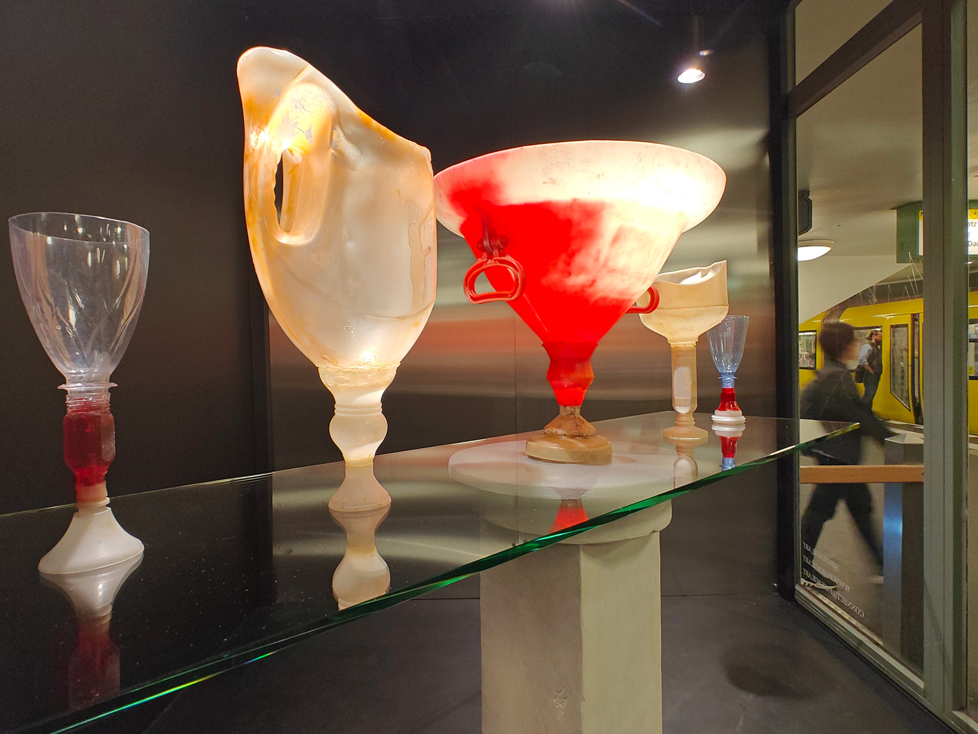 Currently on show is Gerd Rohling’s seemingly antique vessels, sat on glass shelves with value and importance. They are, in fact made of plastic waste the artist fishes out of the Guld of Naples, carefully moulded and lit. The idea of showing work in a public vitrine is not unique, it’s an idea repeated across many places, but it does work extremely well in Hermannplatz, and perhaps causes a moments pause for a passerby, or triggers an abstract idea that recurs through their day.