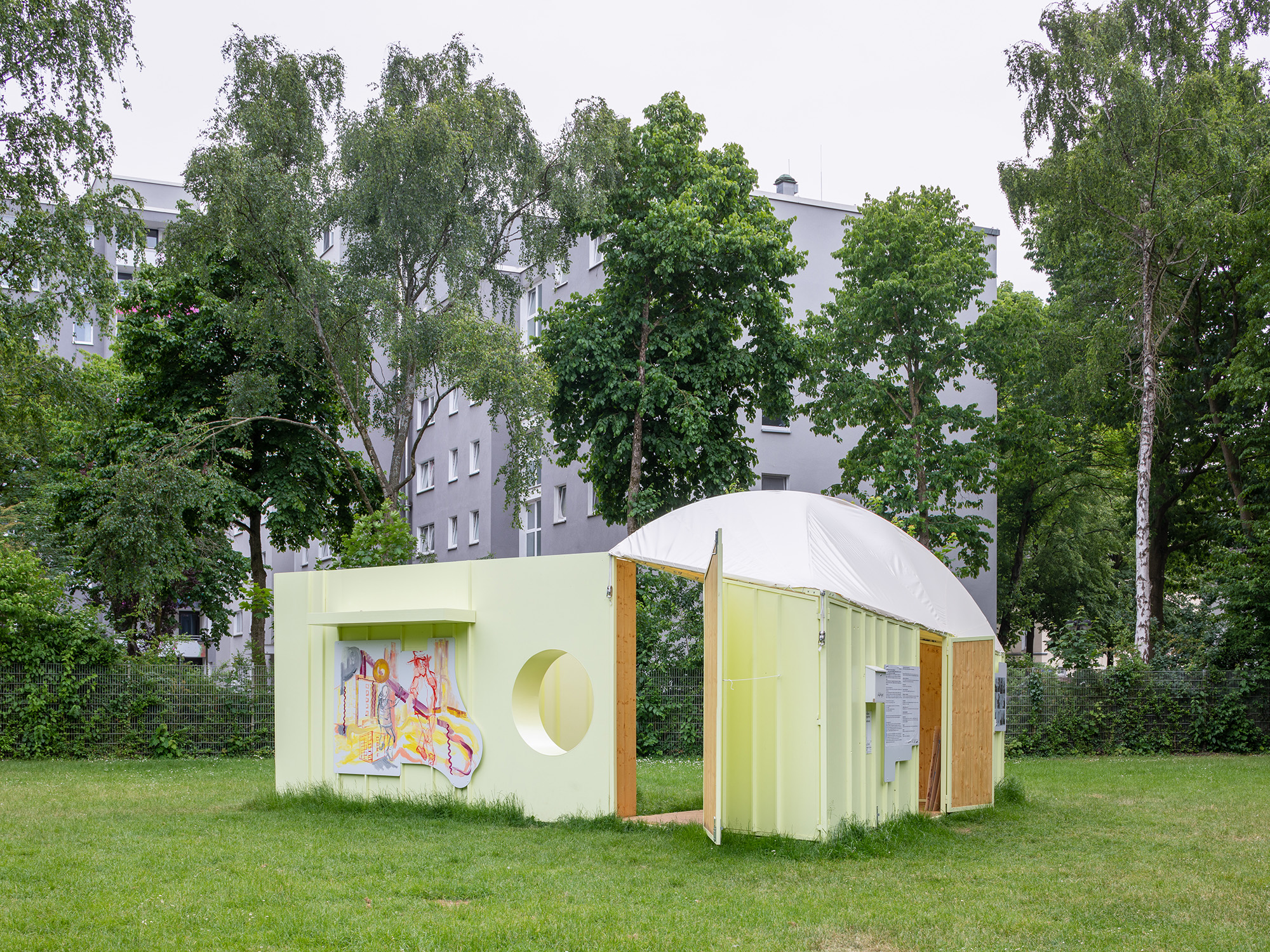 At last year’s Venice Biennale of Art we wrote about a huge, blue pop-up tent enclosing otherworldly undersea creatures (00231). It was a project by Josèfa Ntjam for Berlin immersive art organisation LAS Art Foundation who since 2019 have been creating unexpected, site-responsive, and memorable projects in the German capital’s non-gallery spaces. Their latest project is a double header taking over an upper floor of a long closed-down CANK discount department store in Neukölln.