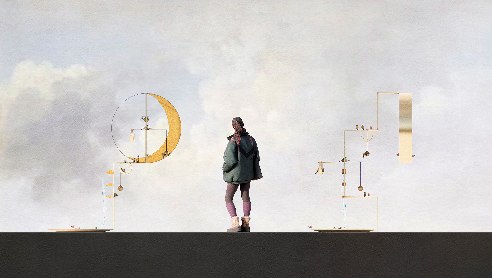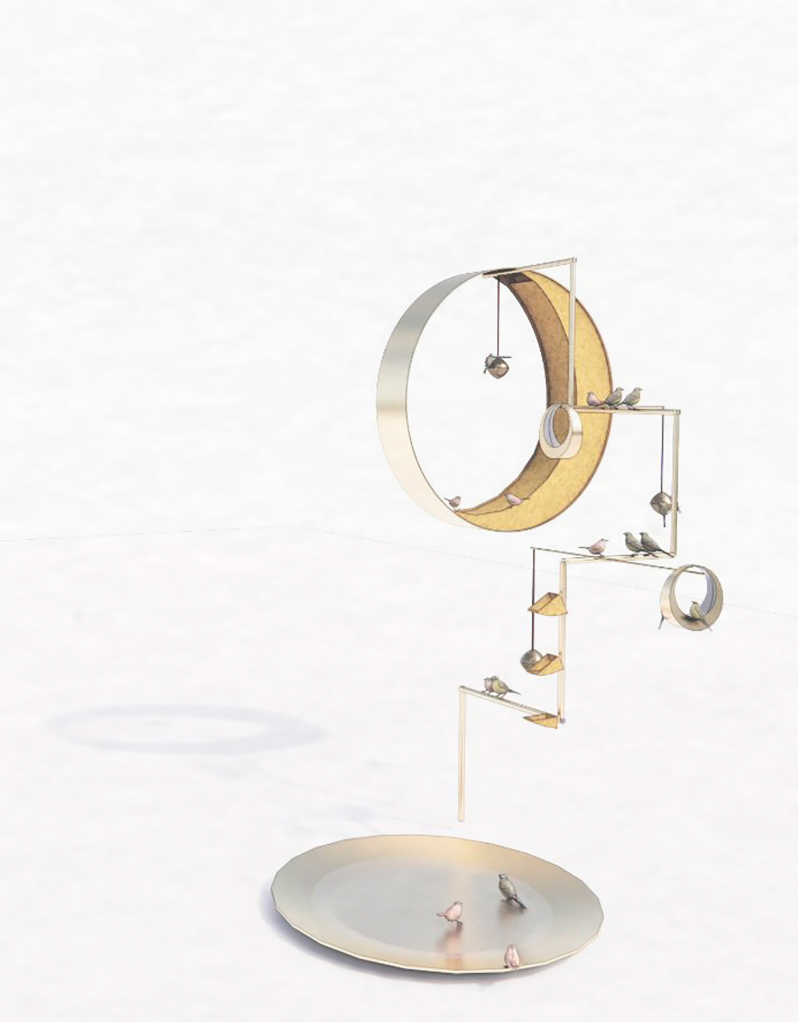 Their response is a Suprematist-like sculpture of interconnected circular and geometric elements, as much a game of balance and exploration for birds as it is a service for feathered friends.