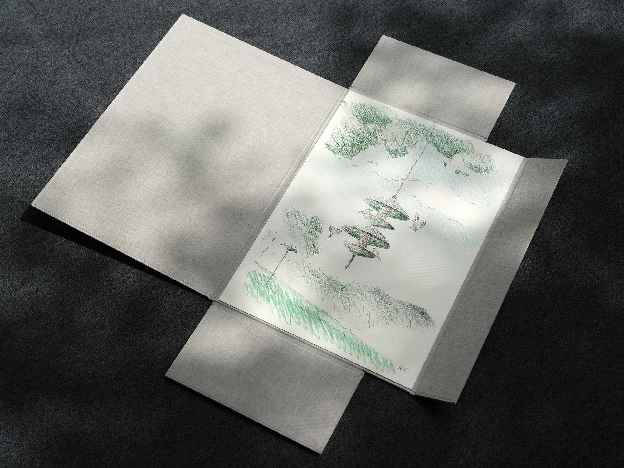 fig.ii Lord Foster, Drawing of 'For the birds' for Architects for the Birds, 2025.