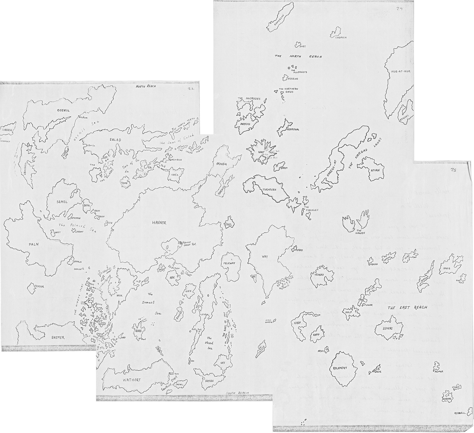 maps drawn by author Ursula K. Le Guin as part of her authorial worldbuilding process.