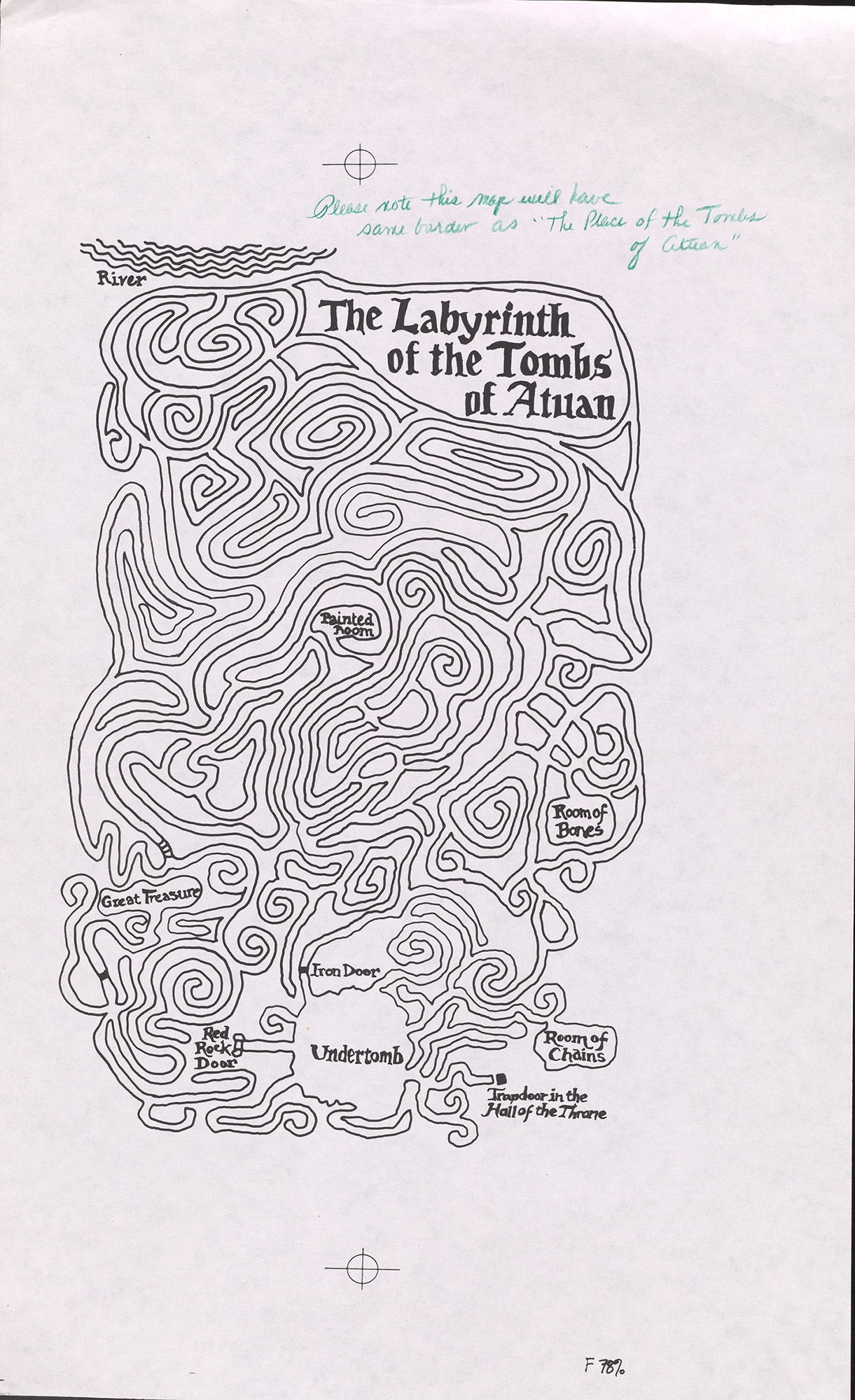 for the Labyrinth of the Tombs of Atuan, with note, c.1970. Ink on paper. Courtesy