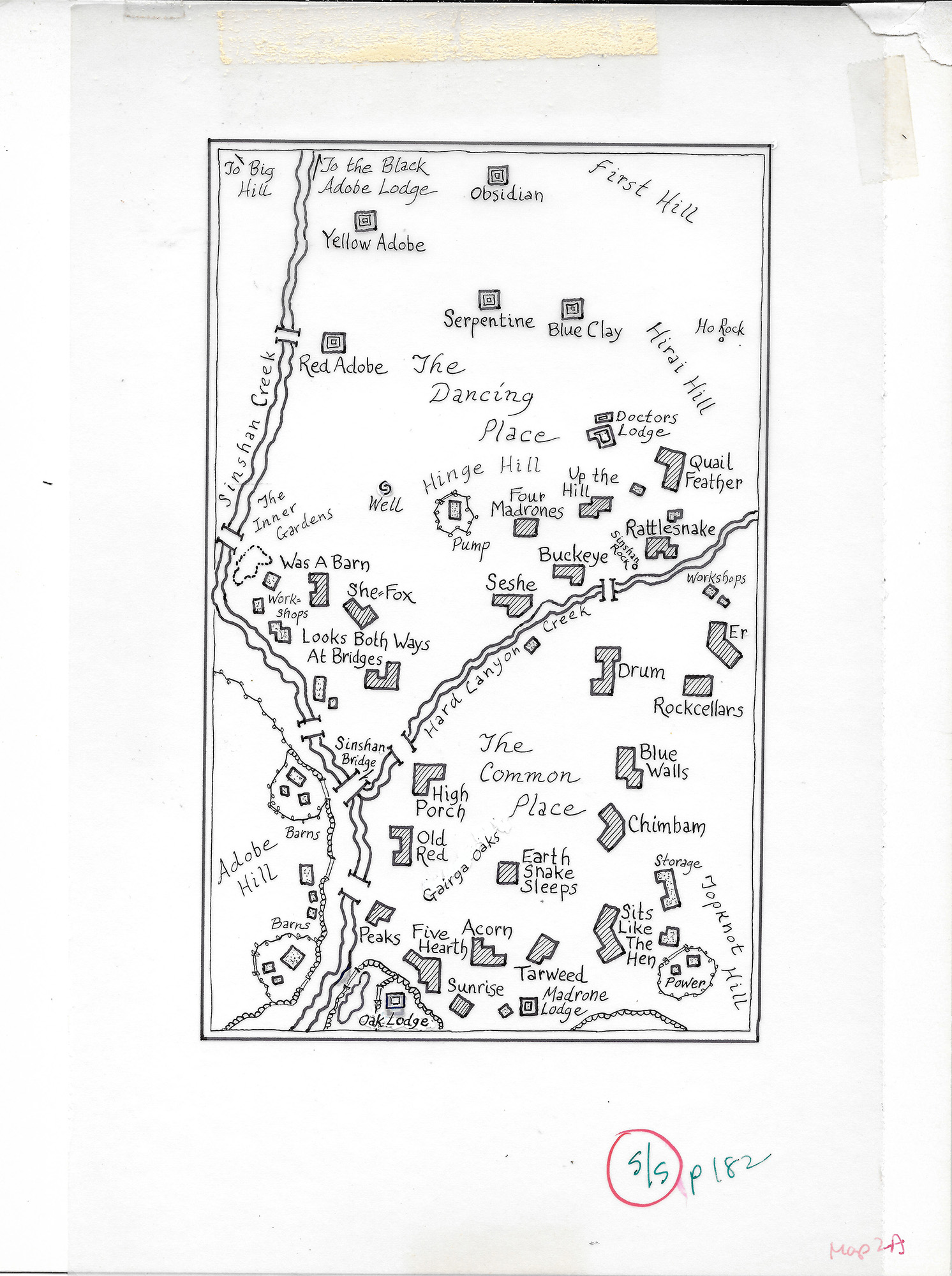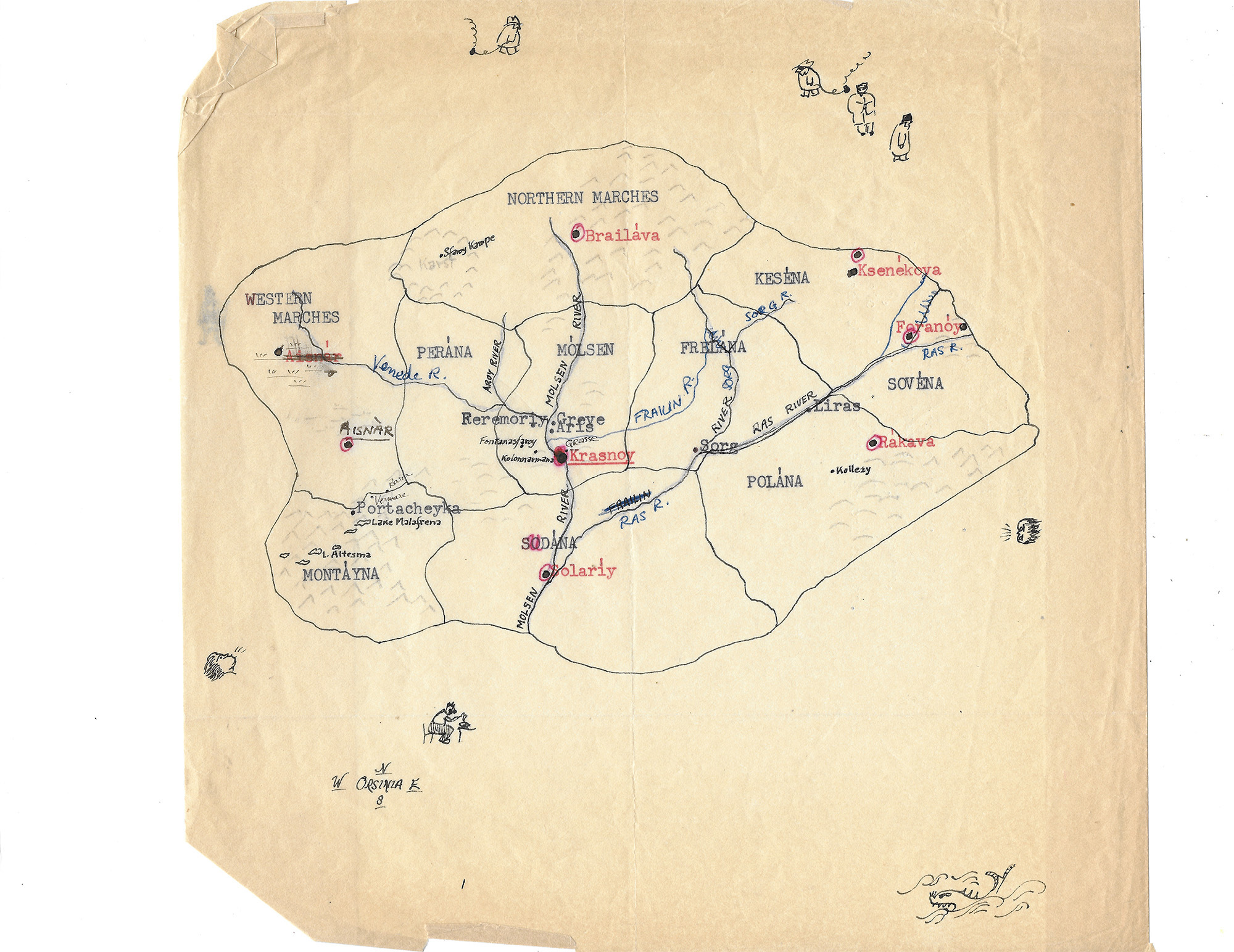 fig.ix Orsinia, the Ten Provinces, unpublished, for Malafrena, 1979. Ink and typewriter text on tracing paper. Courtesy Ursula K. Le Guin Foundation.