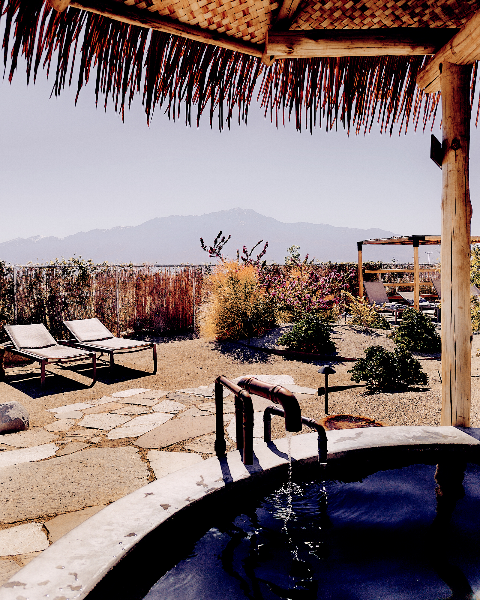 Two wells feed this large day spa and hotel which encompasses a rich range of inside and outside spa pools, a Finnish sauna, and intimate hot tubs of hot spring waters punctuating the acre of desert blooms. The terrace and gardens offer views across the Coachella Valley, while inside a café offers a healthy offer – recessed.space had a green salad and marinated rare tuna, with home-made nutrient-rich juices.