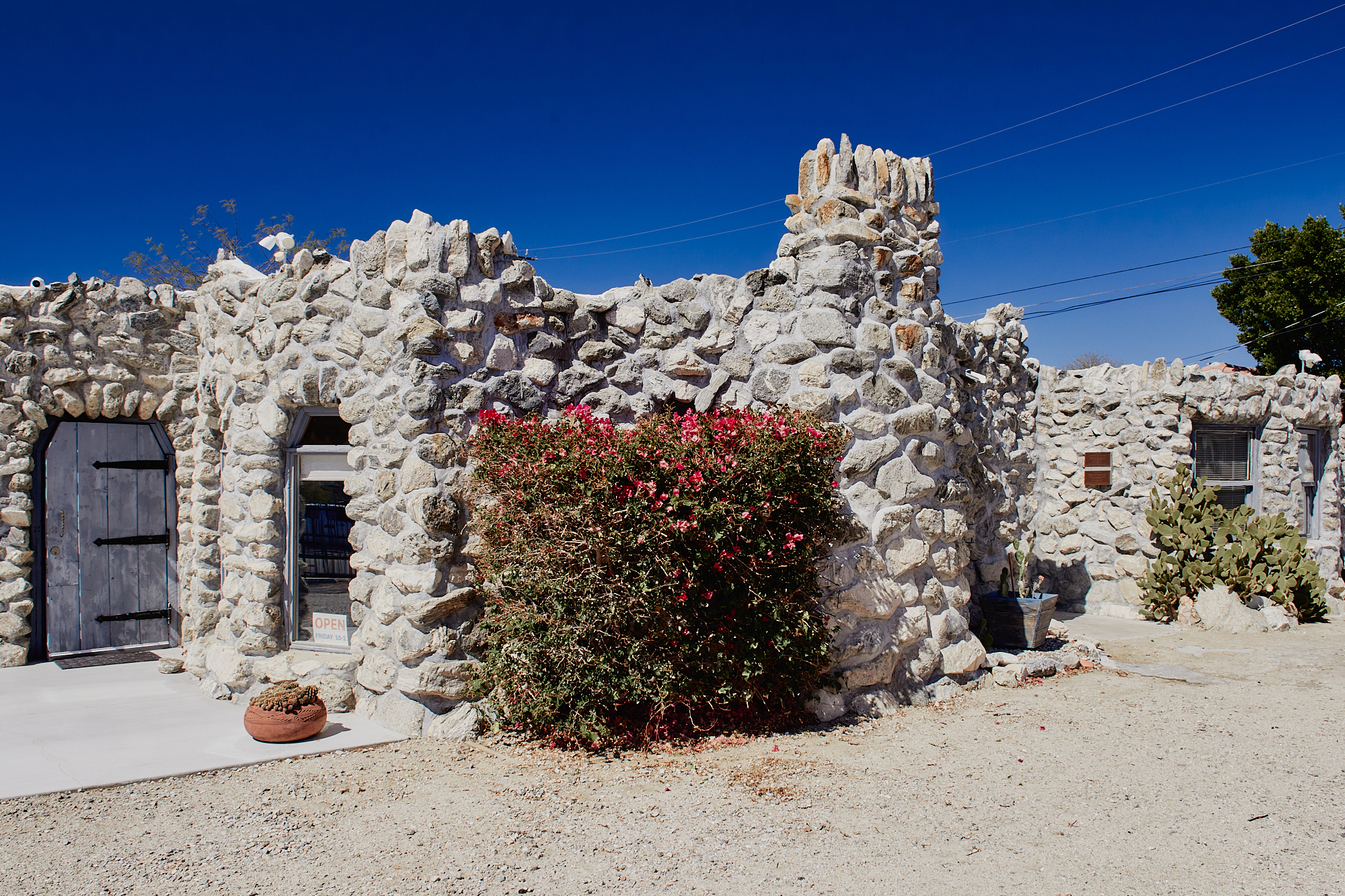In 1947, the area north of Palm Springs was largely empty desert, dotted with over twenty naturally occurring hot and cold mineral springs. Until 1908, the local population comprised Cahuilla Indians, with a scattering of homesteaders up until 1941 when the town was founded. Constructed by hand by retired 75-year-old miner Lee Watkins, the Pil-o-Rox house was one of the first permanent homes in an area advertised as a “Cabin Sites development”. The hand-made dry-stone vernacular makes for a strange bedfellow alongside the developer stock elsewhere in the town, and is now a volunteer-organised museum and community space.